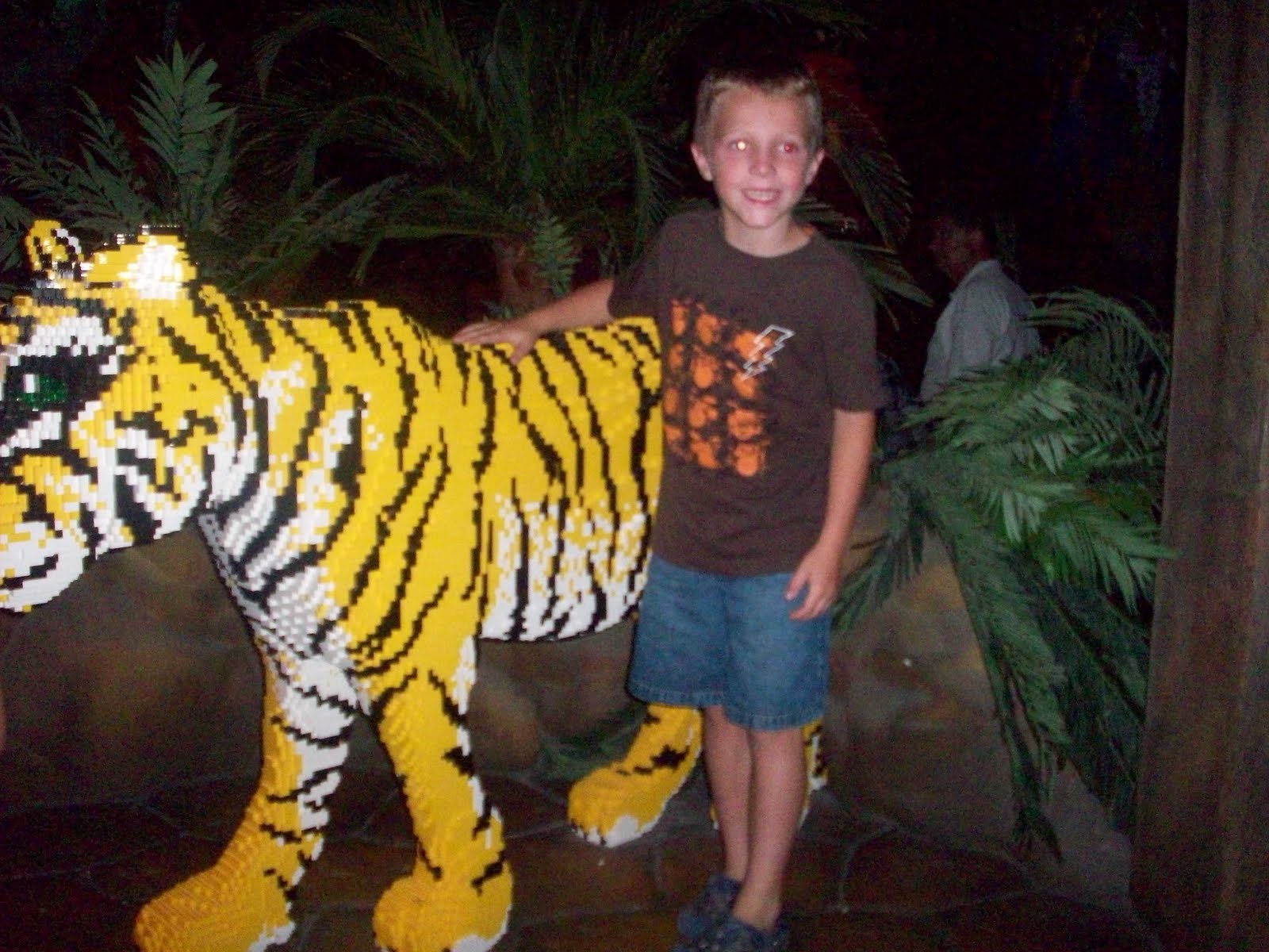 This past weekend we took a mini weekend vacation with the family. We headed to the Chicago area and went to Legoland and the Brookfield Zoo( I will post pics of that trip soon). We drove to Legoland on Friday, got to our hotel around 2:00, checked in and then headed to Legoland. WOW! I am amazed at the crazy stuff they make with Legos, that has to be a very tedious and time consuming job and must take alot of patience! I forgot to take a picture of the huge giraffe they made out of Duplo blocks when you walk in the entrance, but its huge! The boys had a great time in there checking out all the creations, building their own cars/trucks. We also watched a 4D movie and went on a dragon ride. After being there for about 3 hours we grabbed some dinner then headed back to our hotel for some swimming and to bed b/c we had another busy day ahead of us. If you have young boys( or girls too, the also love Legos, but there were far more boys there than girls) that love Legos I would suggest checking this place out, its about a 3 hour drive away, you could just make it a day thing if you wish. They also had a Lego store there too, if you want to buy stuff and it is priced the same as stores around here, but they have a better selection. I will post about our second day at the Zoo soon, for know enjoy pictures of Legoland....